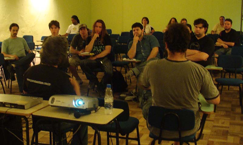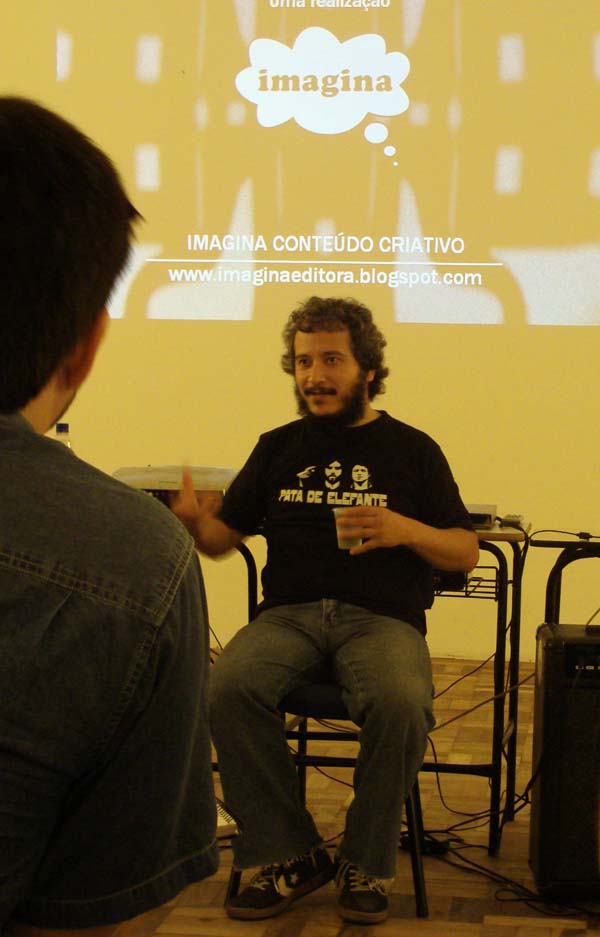 O bate-papo informal foi mediado pelo jornalista Rodrigo dMart (de costas à direita), da Imagina Conteúdo Criativo.