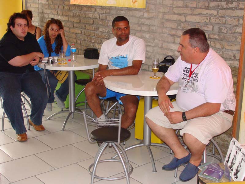 O produtor cultural Alê Barreto e os editores, Rodrigo dMart e Yara Baungarten, deram continuidade à turnê de lançamento do livro “Aprenda a Organizar um Show” na zona sul.