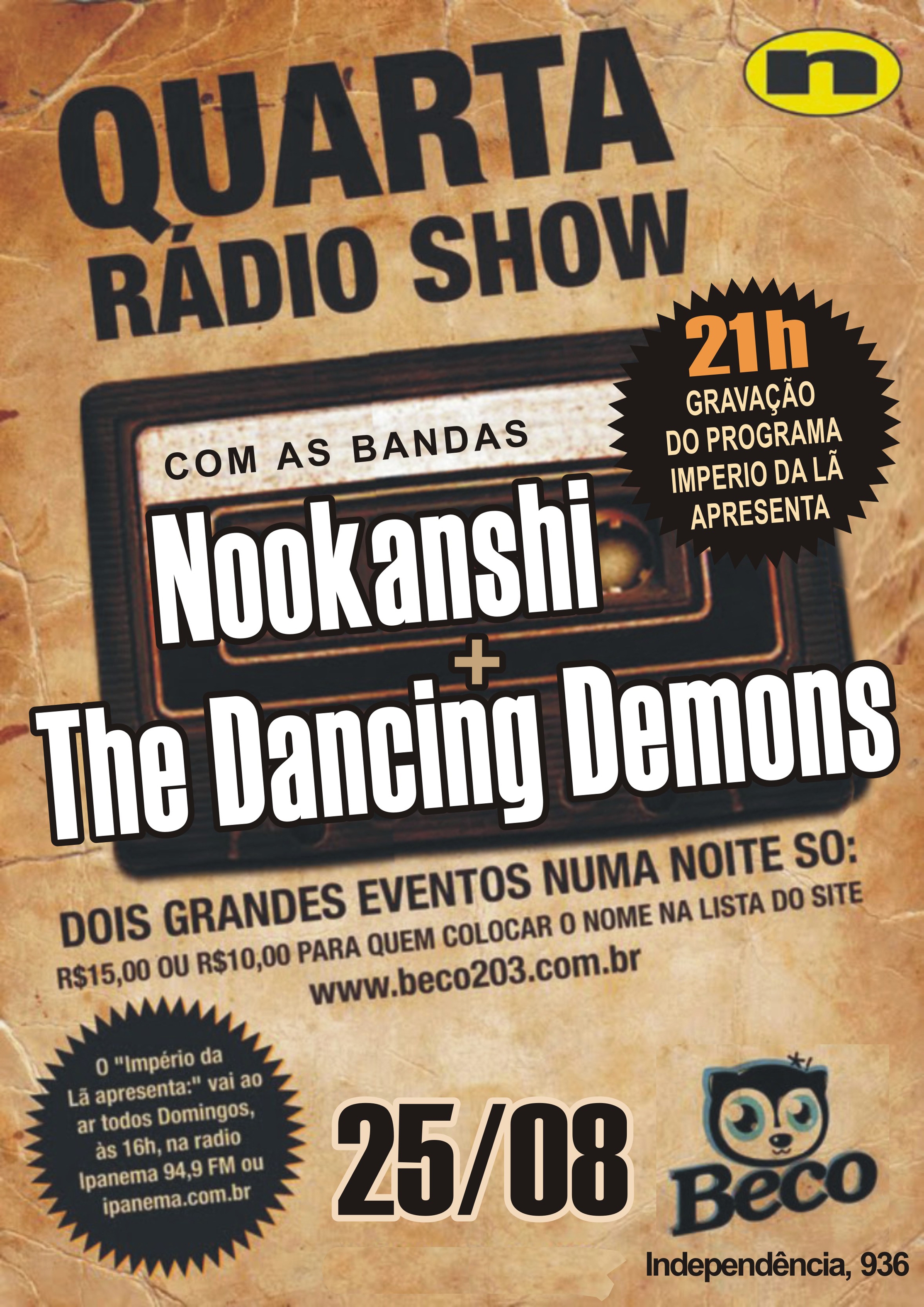 Nesta quarta-feira, 25/08, as bandas The Dancing Demons e Nookanshi participam do projeto “Império da Lã Convida”, coordenado pelo Carlinhos Carneiro, Chico Bretanha e companhia.