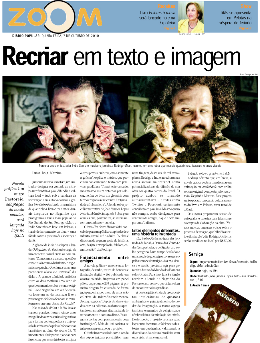 Na quinta-feira, 07/10, o início da turnê de divulgação da graphic novel Um Outro Pastoreio”, do ilustrador Indio San e do jornalista e músico Rodrigo dMart, foi em Pelotas, uma das cidades mais úmidas do planeta, que fica cerca de 250 km ao sul de Porto Alegre.