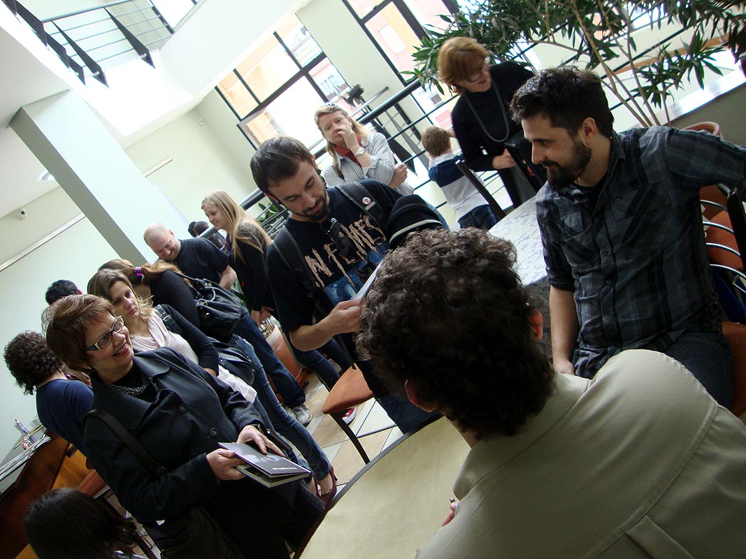 Palestra e autógrafo para estudantes de design e quadrinhos