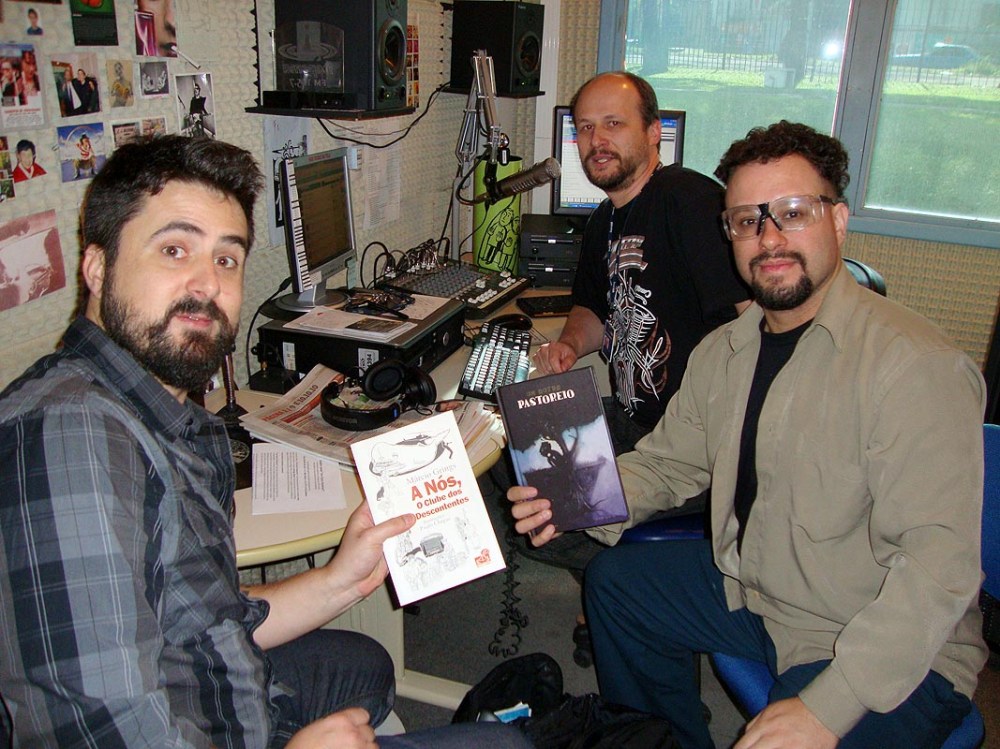 Indio San e dMart com o radialista Márcio Grings, da Itapema FM, de Santa Maria