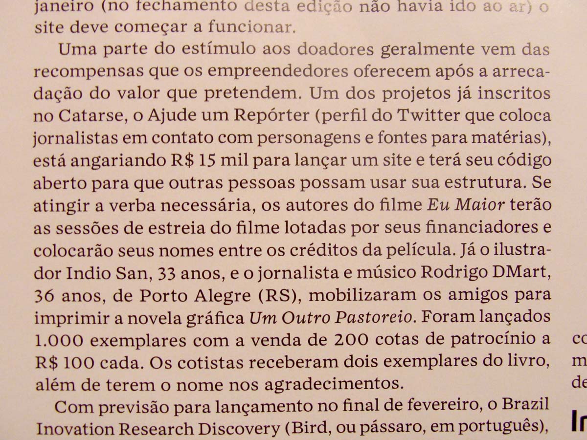 Somos um dos cases citados na reportagem sobre crowdfunding, ou seja, financiamento em massa, escrita pela jornalista Natália Garcia.