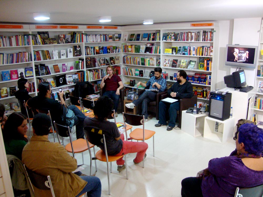 No encontro, que aconteceu no dia 03/05, na Livraria Letras & Cia, no Bom Fim, dMart mostrou suas influências literárias e em HQs, Indio falou de suas experiências em ilustração e Paim apresentou algumas novidades de suas pesquisas em quadrinhos, como a proposta de poesia randômica de Raymond Queneau.