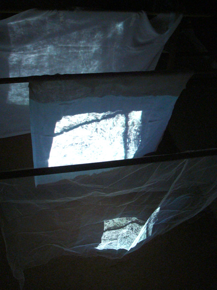 No atelier da Imagina Conteúdo Criativo, estamos realizando alguns testes para conferir as texturas, distâncias e resultados da projeção nos tecidos da instalação, que vai possibilitar que os espectadores sejam envolvidos pela gravura, aumentando a interatividade com as obras. As “Videotipias do Espírito” trazem a marca do hibridismo das linguagens, utilizando a tecnologia para realizar cruzamentos entre a gravura, a música e o vídeo.