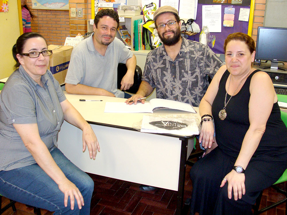 - Alegria na entrega do livro. Fotografia: Yara Baungarten.