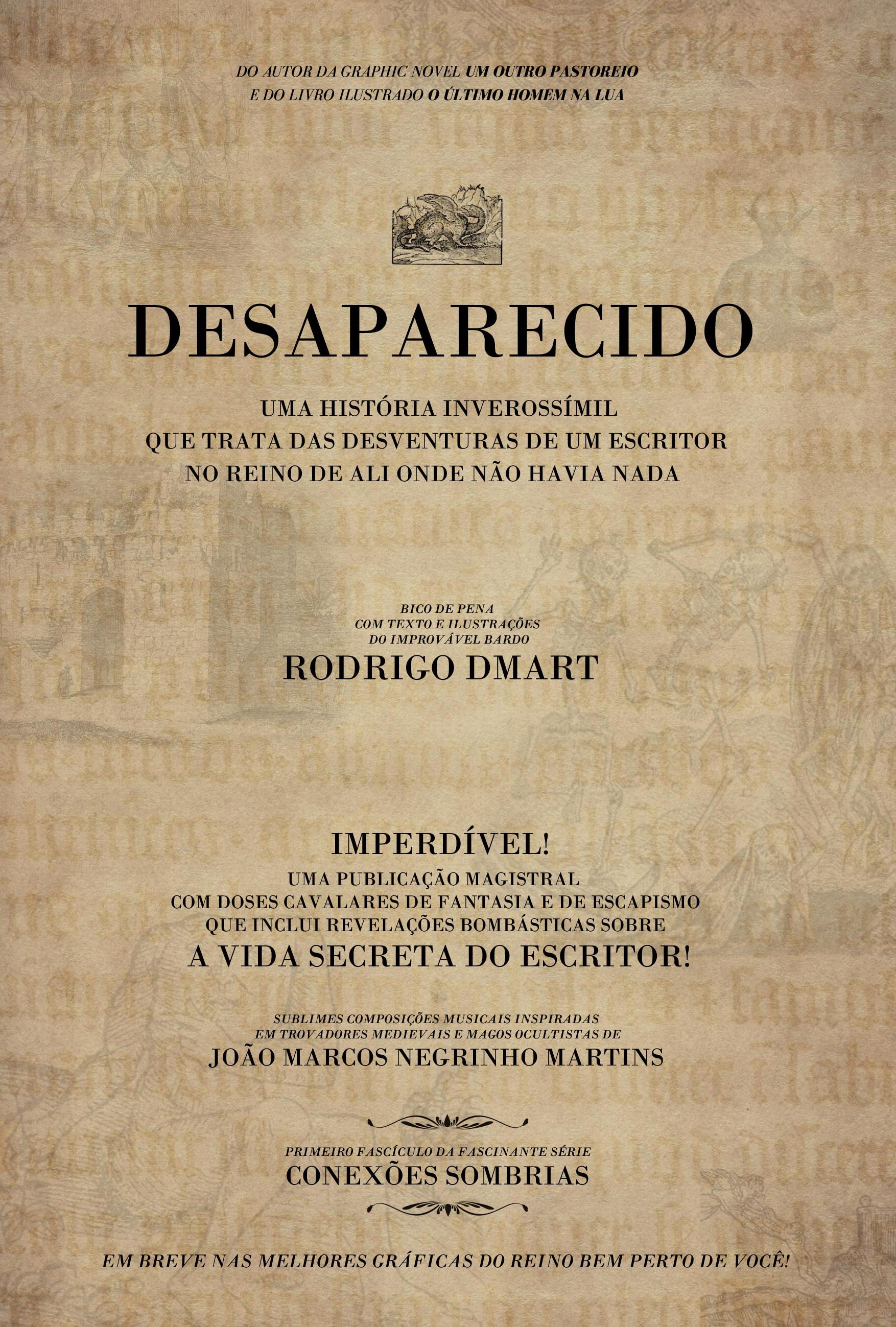 Desaparecido é o primeiro fascículo da série Conexões Sombrias. Um texto iniciado em 2005 que finalizei, oito anos depois, em incríveis duas semanas. Trinta páginas da primeira versão (first draft) que, é claro, passará por inúmeras revisões e edições até o último instante.