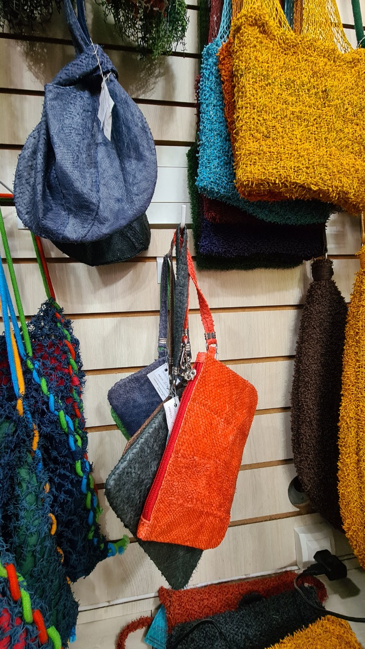 A Associação de Artesãs Redeiras do Extremo Sul trabalha reciclando escamas de peixe, redes de pesca e couro de peixe. A formação do grupo contou com orientação do Sebrae/RS, que auxiliou na execução do planejamento de cada etapa do projeto, na criação das peças e na administração da coleção. Conheça as biojoias e o trabalho das Redeiras em www.redeiras.com.br