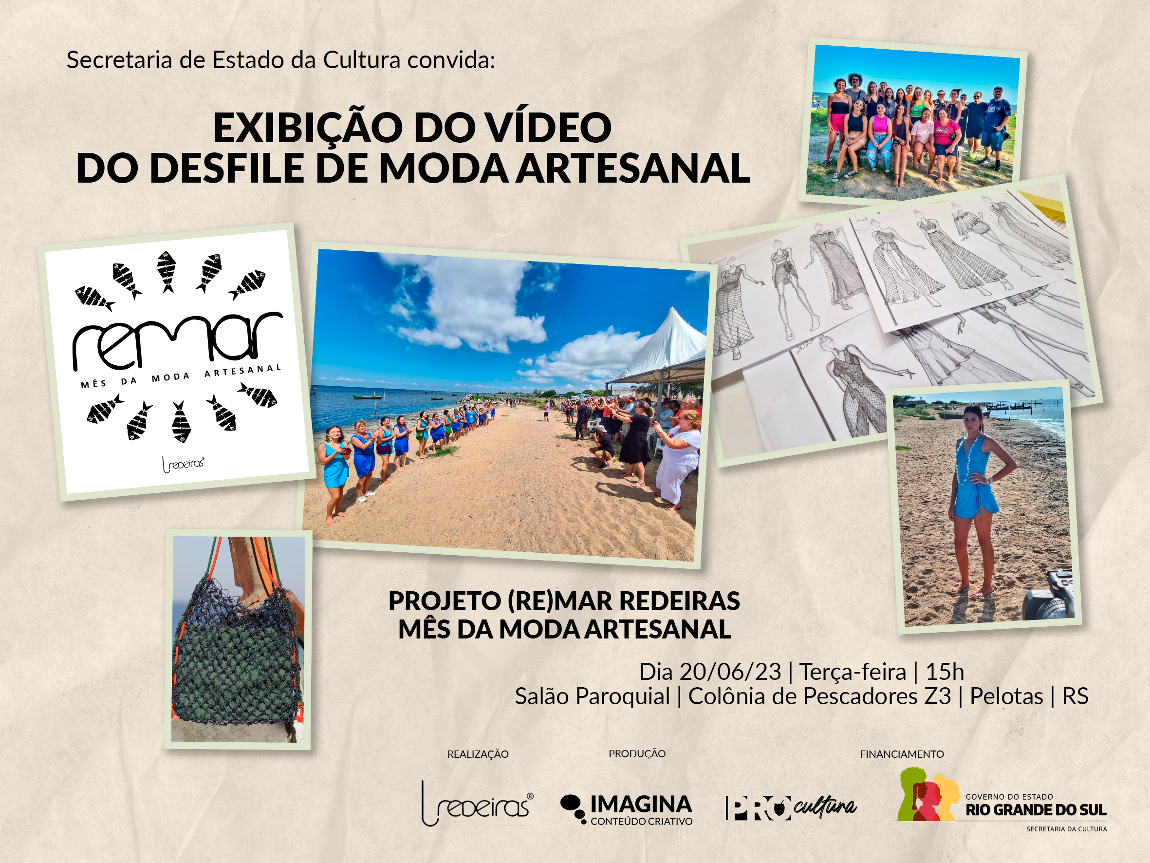 (RE)MAR Redeiras no Mês da moda artesanal, que contou com oficinas gratuitas para a comunidade e desfile das peças artesanais das Redeiras, como bolsas, colares e biojoias, confeccionados com a reciclagem de redes de pescar camarão.